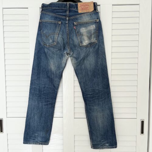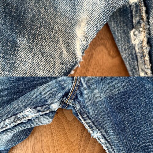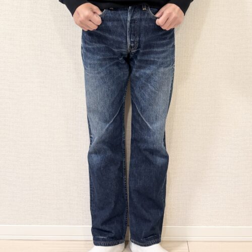 続いて3つ目の商品は当ブログで何回も登場していますが、3年穿き込んでヒゲ落ちしたリーバイス501レギュラー最終モデル。筆者もかれこれ5本以上のリジッドデニムを穿き込んできましたが、ここまでヒゲの本数を作れたのは初めてです!