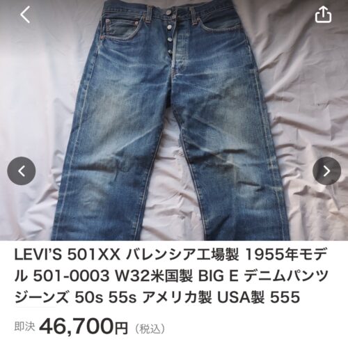 また我々庶民の味方で5,800円位で買えたリーバイス501レギュラーですが、今ではアンダー1万円で見つけるのは不可能。。とは言え高くなっても欲しい物は欲しいので、筆者の古着コレクションの中であまり着ていないアイテムを手放して購入資金にすることにしました!