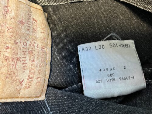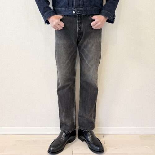 続いて4つ目の商品は、ここ数年若者に人気のリーバイス501サルファブラック…改め、我々世代で言うところの501レギュラー後染めブラックです。筆者は先染めブラック派でしたが、ブラックのヒゲ落ちが欲しくなり静岡の名店Prayer arrowで購入しました。