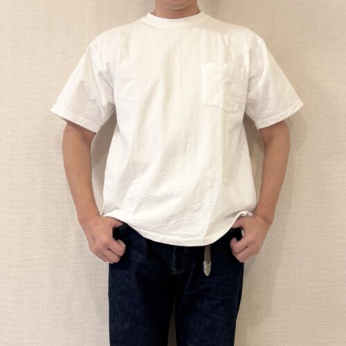 試着の為に久しぶりに袖を通しましたが、キャンバーはネックが詰まっているので上品に見えるのが特徴です。我々大人が一枚で着てサマになるTシャツだと思いますし、生地が分厚いので「B地区」が透けて見えないのもありがたいです笑😅