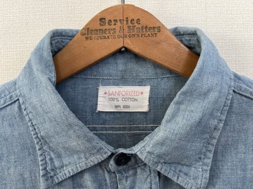続いての商品はアメリカ三大ストアブランド、シアーズローバック社の60sシャンブレーシャツです。このシャツは左肩に最初のオーナーが入れたであろうアメリカ軍のステンシルが入っており、これから春に一枚で着ても洒落て見えると思います。
