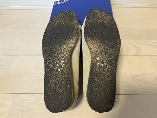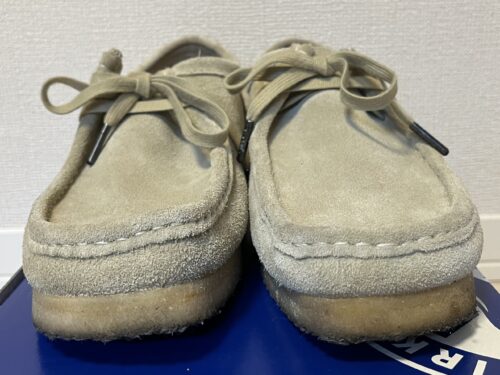 続いての商品は、過去記事で33,000回以上のアクセスをいただいたクラークス ワラビーのメープルスエードです。現在若者に人気のワラビーですが、学生時代に履いていたのを懐かしんで購入したものの、5回位しか履かず靴箱で出番を待つこと数年…。